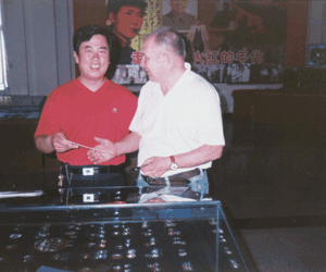 陈德先生在毛泽东像章陈列馆接待英国友人